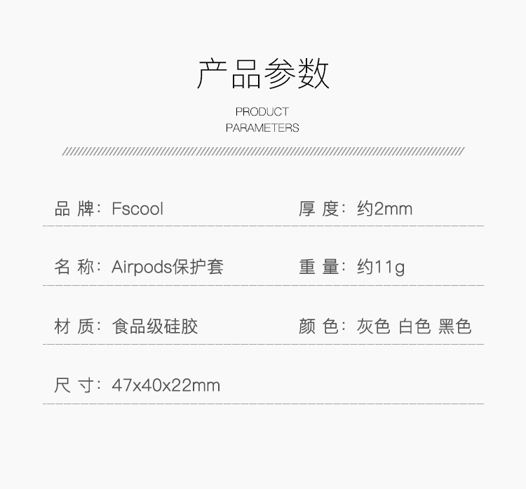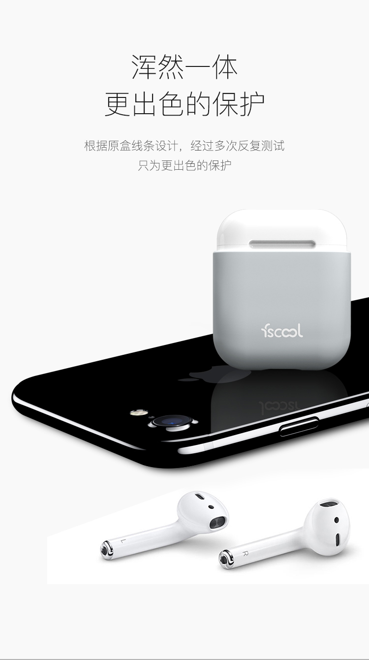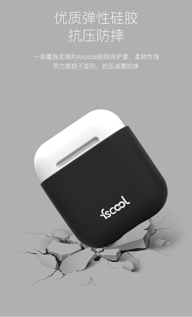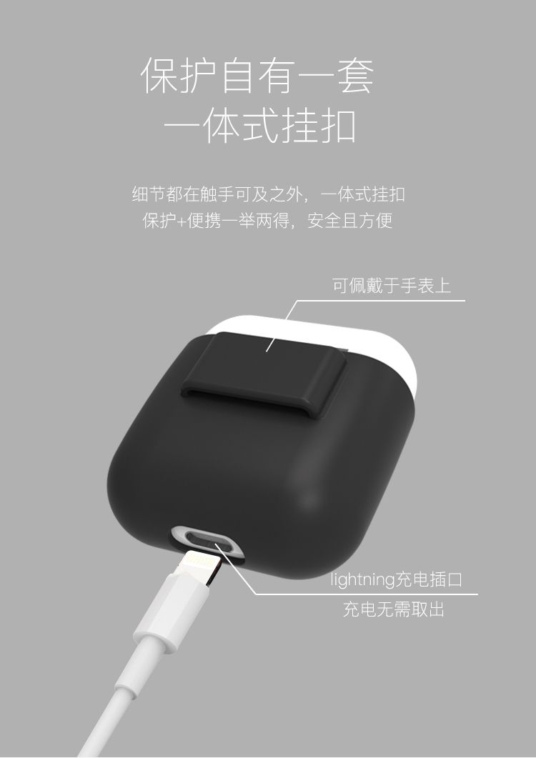 特点:一款量身定做的Airpods硅胶保护套,柔软性强 用力揉捏不变形,抗压减震防摔