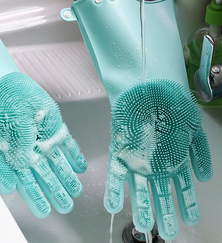 日常做家务中,为了保护手免受洗洁精和洗衣粉的伤害,我们通常会使用手套洗衣服洗碗,特别是冬天的时候,洗洁精和洗衣粉都是碱性物质,会破坏皮肤的保护层,会使手变得干燥、粗糙。这款多功能硅胶手套,刷子手套二合一,柔软刷毛弹性大,清洁护手,一双搞定!