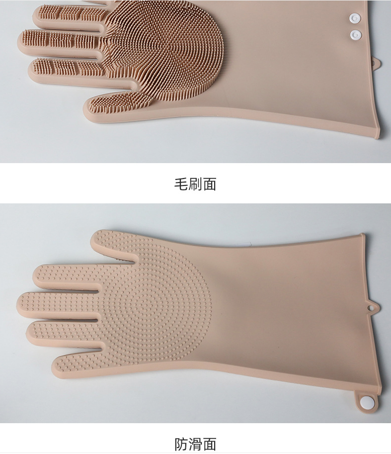 多功能硅胶手套搓一搓,易起泡,无需抹布钢丝球等清洁工具,只需少量洗洁精,徒手揉出丰富泡沫,可以节省洗洁精。清洁球刷碗容易有划痕,硅胶手套则一点都不会有划痕哦。洗洁精泡沫易清洗,充分利用硅胶的疏水抗污性,使用后清洁手套时,只需双手揉搓掌心并冲水,即可去掉藏在缝隙的各种残渣,不会跟抹布一样,要清洗好几遍,这个只需水冲几下就干净了。