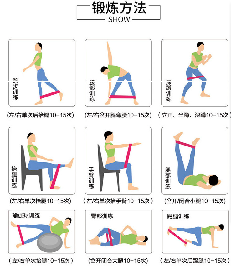 随时随地,练遍全身,这款弹力带是一款很适合随身携带的健身器材之一,它能带来多角度的抗阻训练,补足重力训练短板,弹力带由硅胶材质制成,手感柔软,拉伸倍数高,回弹性强,抗撕裂程度好,给肌肉更充分刺激,锻炼更有效。可以纠正腿型,增加腿部力量,,塑造腿部线条;可以激活臀部,增加深蹲阻力,塑造蜜桃臀;手臂塑形,辅助手臂锻炼,塑造精致线条。