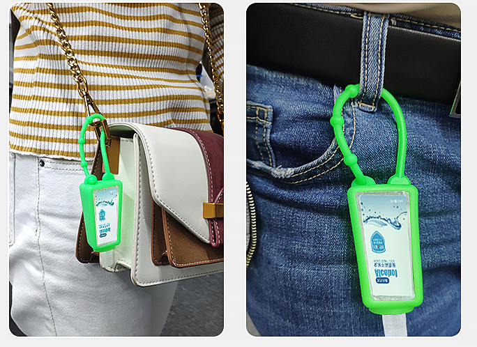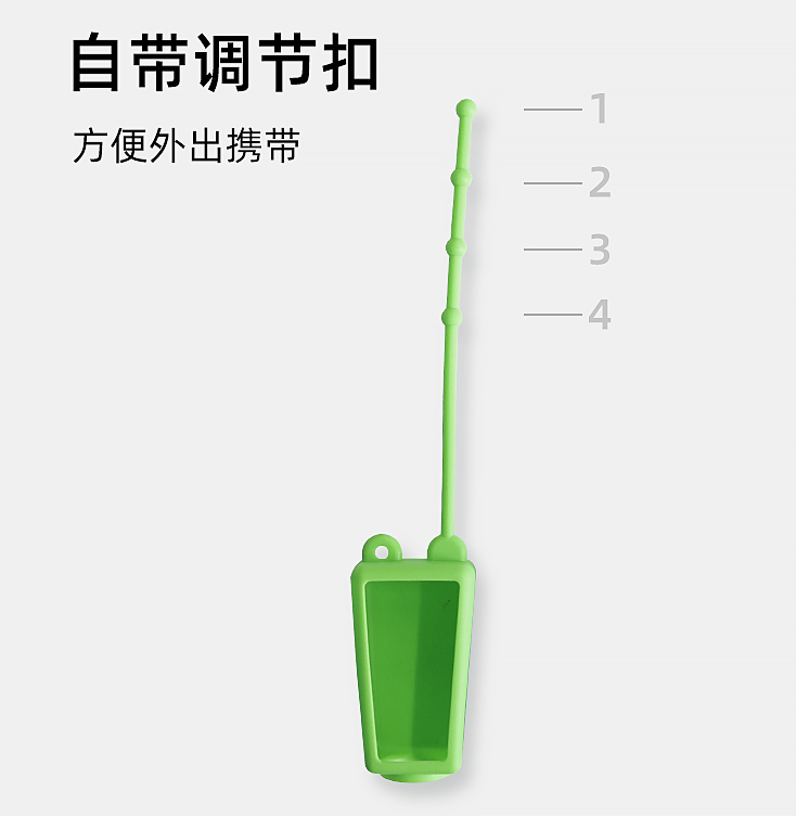 塑胶瓶可灌装洗手液凝胶,挤出轻松方便不遗漏,随时随地清洁手部。小巧的造型,硅胶套上有孔位,自带调节扣,方便外出携带。可以穿扣在背包、书包扣等上面,小朋友上学可以扣在书包上带去上学,外出游玩带上它,不怕找不到水龙头清洁手部细菌,方便清洁手部细菌病毒。