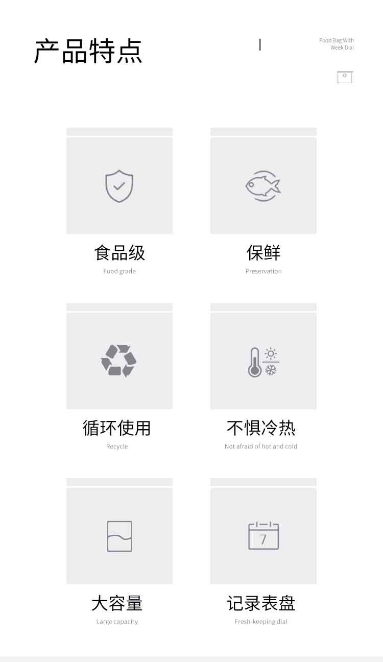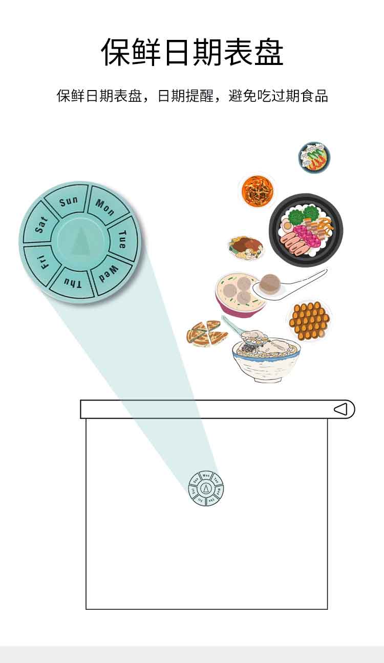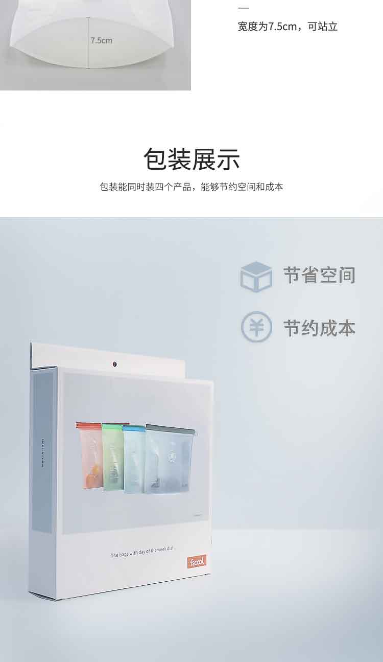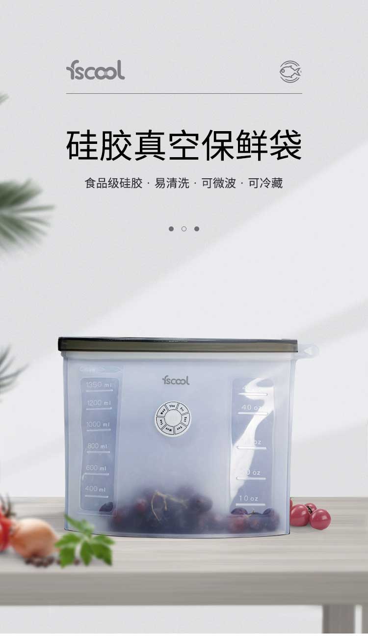 【特点】:食品级耐高温铂金硅胶材质,用于蔬菜、鱼类、肉类及果汁等包装存储冰箱,不同颜色分类使用。保鲜密封不串味。