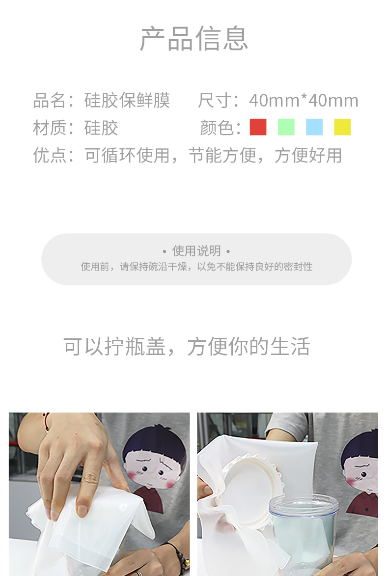 产品名称:厨房用品硅胶保鲜膜|耐冰箱低温冷藏微波高温加热保鲜盖-荣进食品级硅胶保鲜膜定制批发厂家