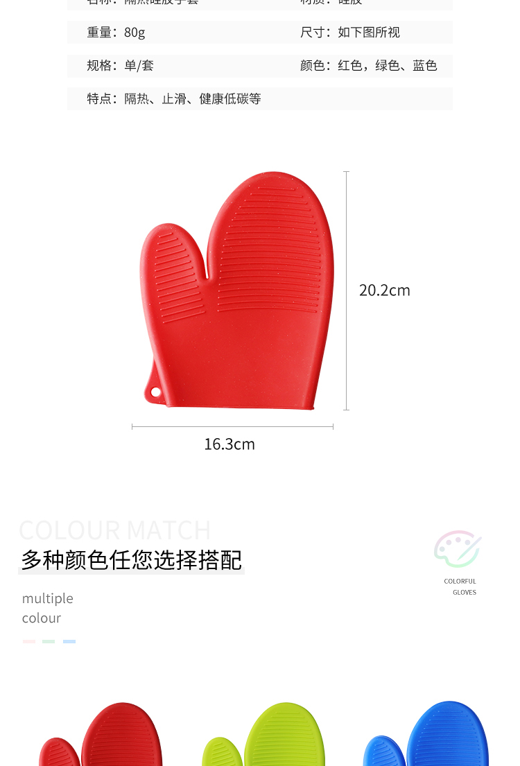 产品名称:厨房烘焙烤箱防烫隔热手套|耐高温硅胶隔热手套-荣进厨房防滑隔热硅胶手套厂家批发