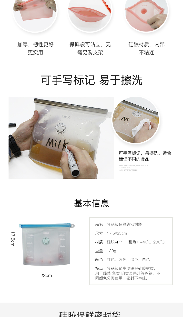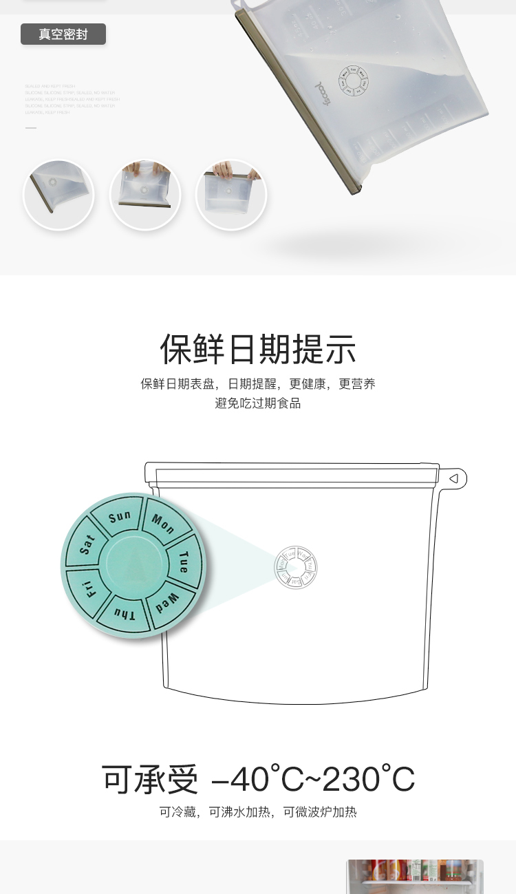 产品名称:硅胶保鲜袋(带时间标识)硅胶食品袋|环保硅胶袋-深圳荣进硅胶保鲜袋定制加工厂