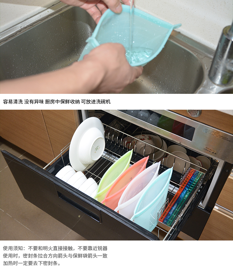 4,防滑性好,剪裁好,做工精致,操作方便,可重复使用,环保节能,值得拥有,家庭必备硅胶食品袋。