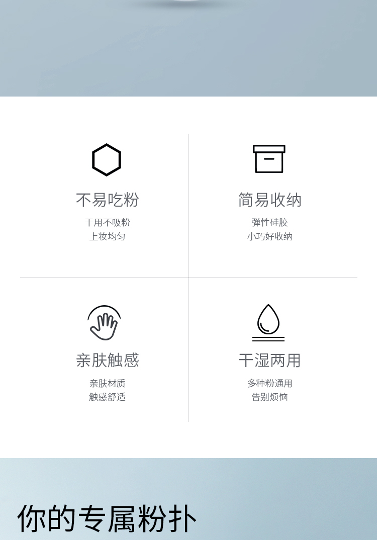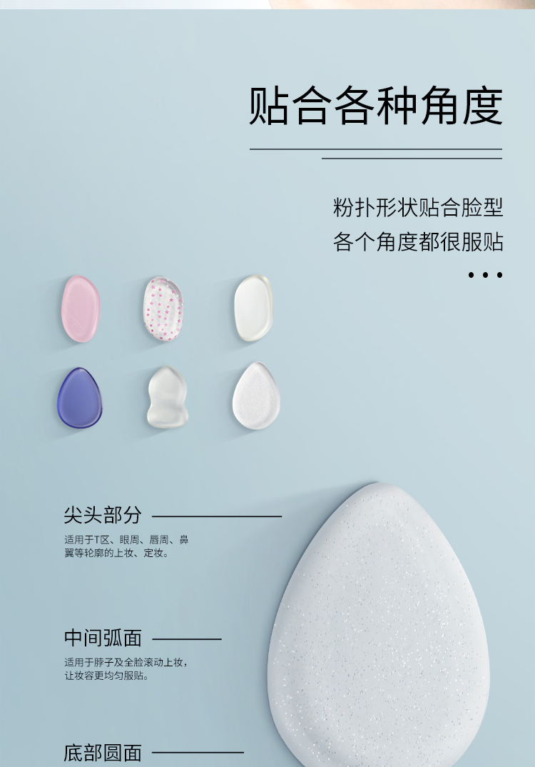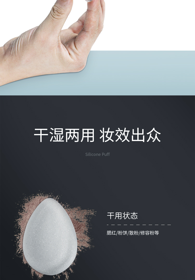 1.硅胶粉扑不吃粉,用量少,请少量多次的叠加上妆,轻拍按压上妆;