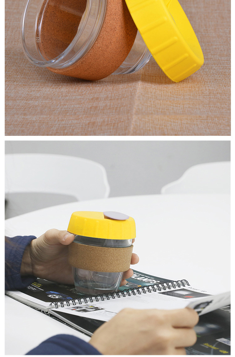 咖啡随手杯软木圈防烫杯套玻璃杯|硅胶杯盖软木杯套随手咖啡杯-荣进咖啡杯可丝印图案批发厂家