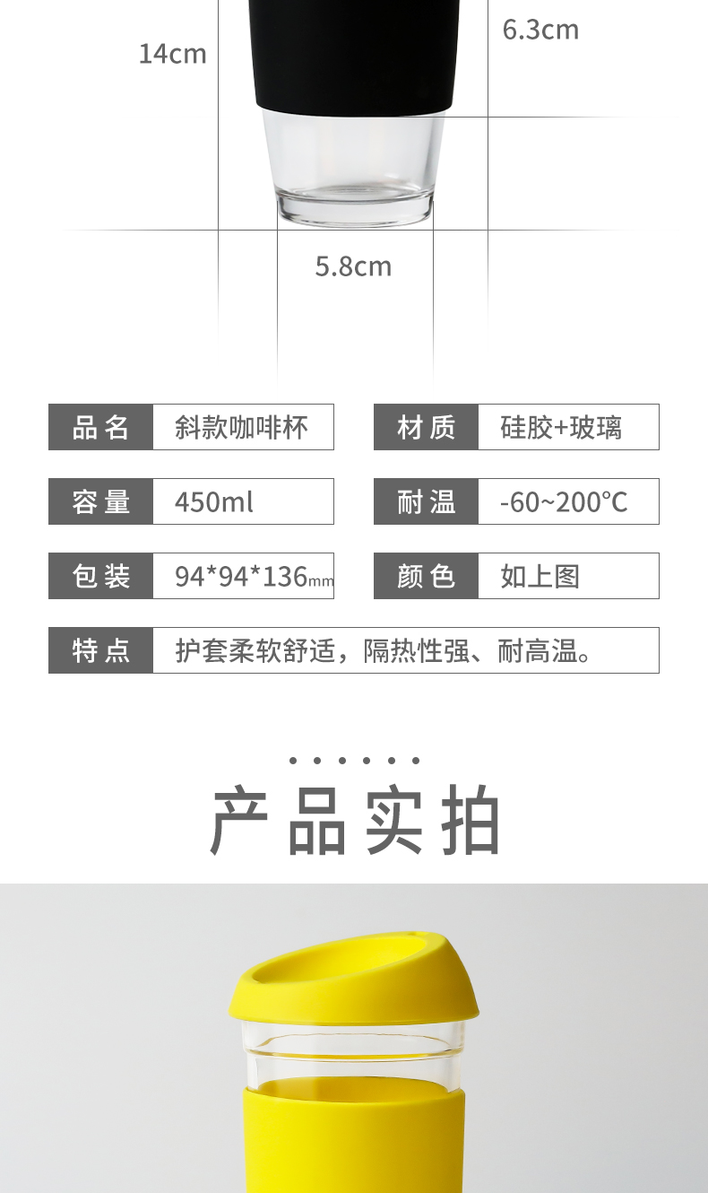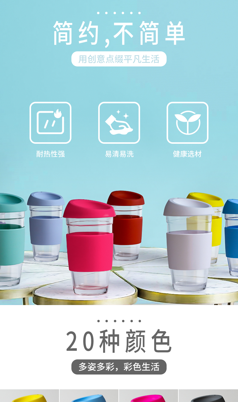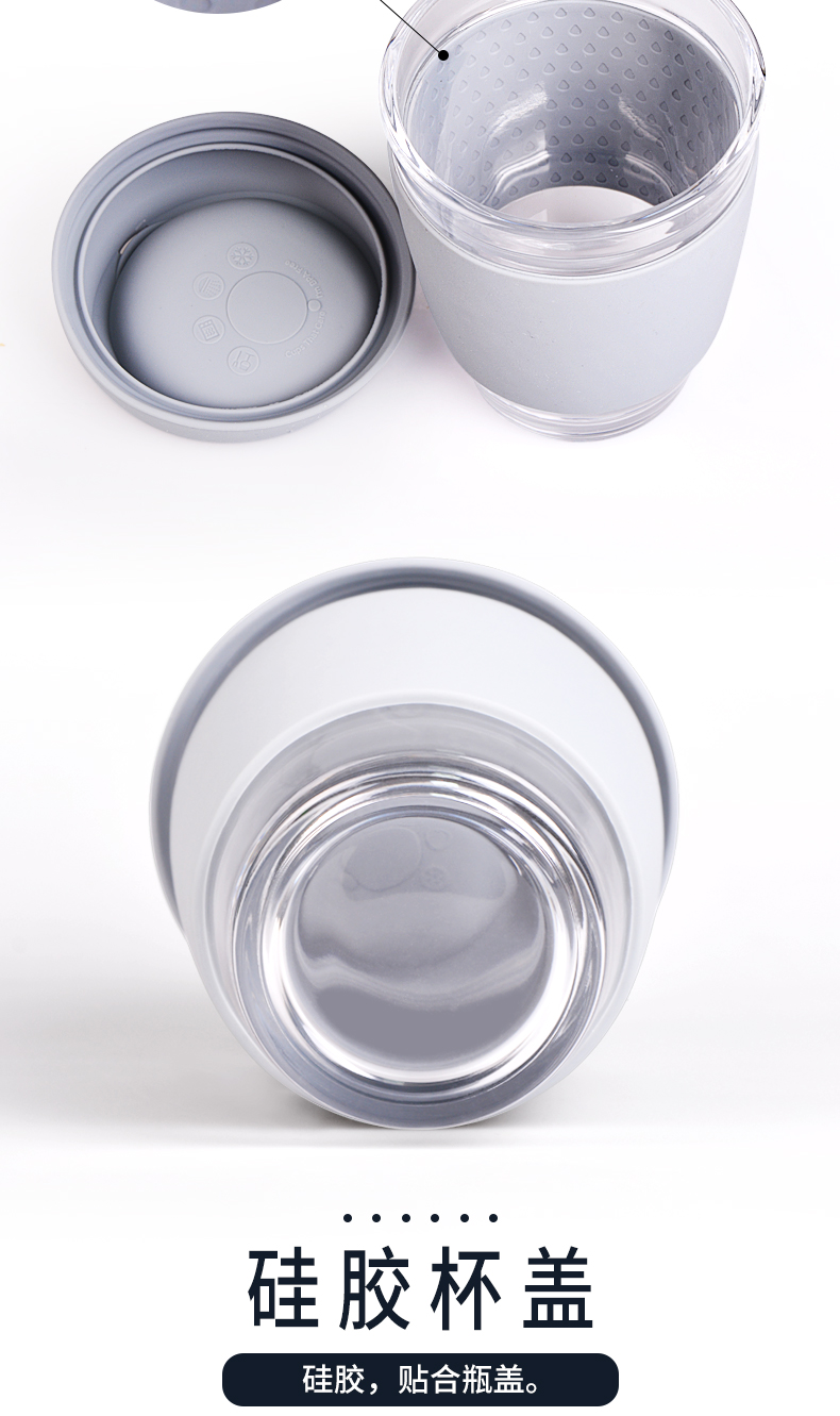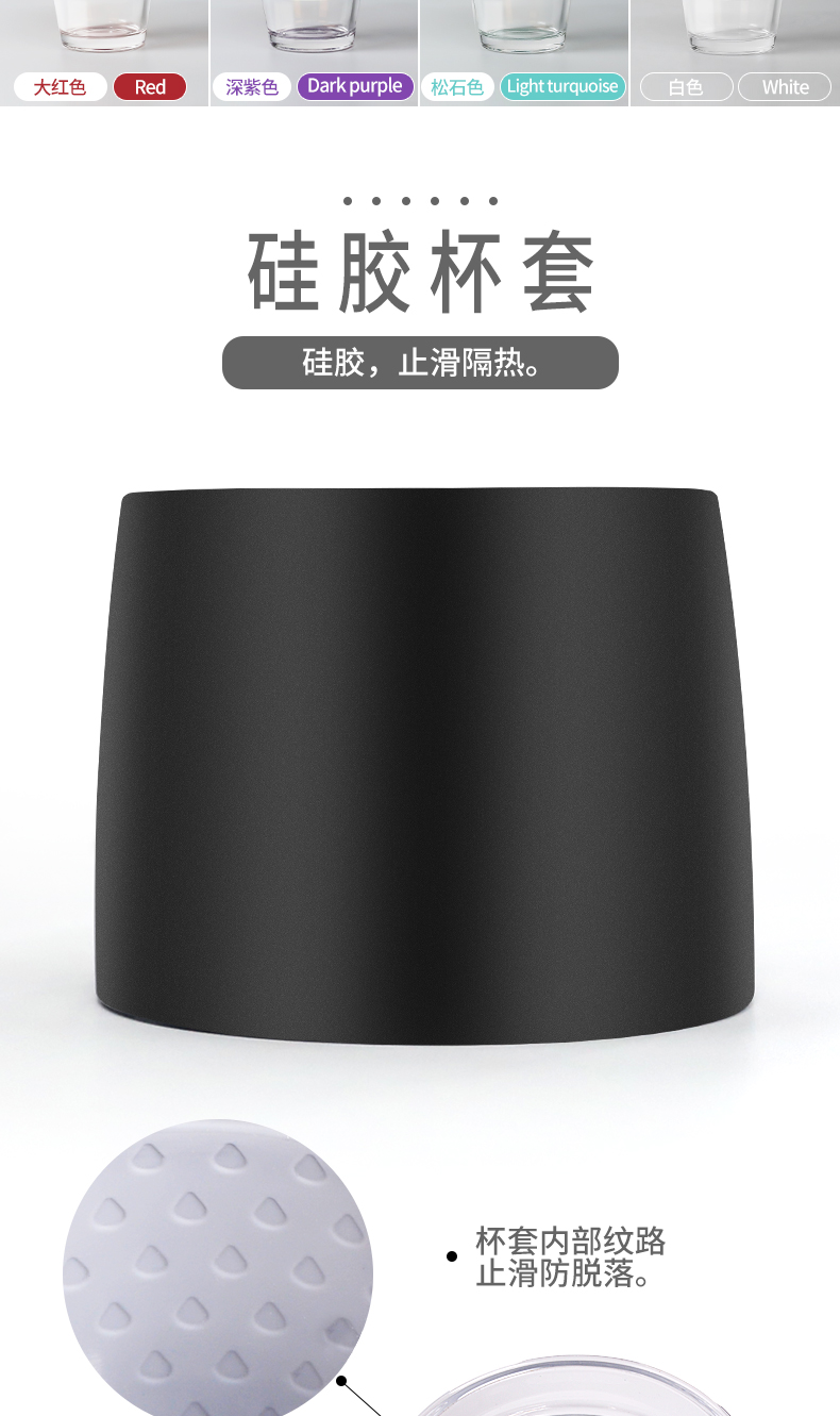 产品材质:硅胶杯套/杯盖+玻璃杯子