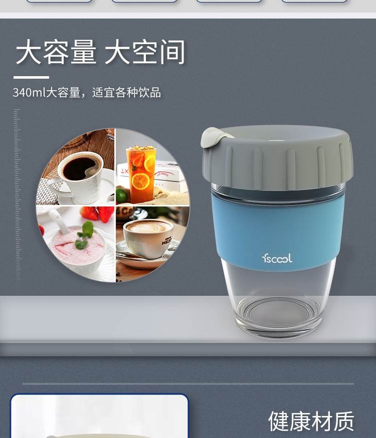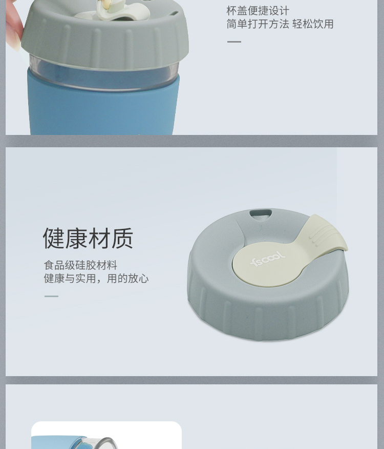 产品特点:杯盖便携设计,简单打开方法,轻松饮用, 食品级硅胶材质安全与耐用,安全健康。
