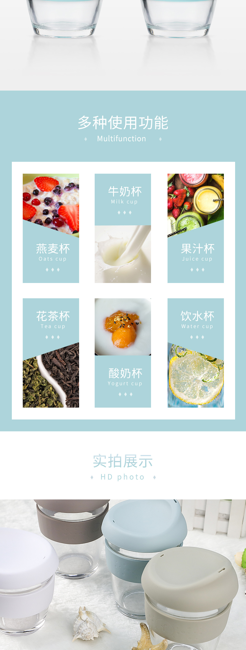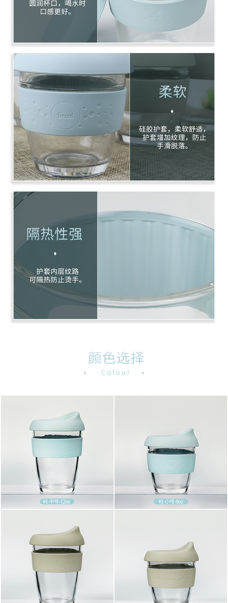 产品名称:创意随手玻璃水杯带旋转扣式硅胶杯套杯盖|果汁冷热饮咖啡玻璃杯-荣进创意玻璃杯带旋转扣式硅胶杯盖杯盖批发厂家