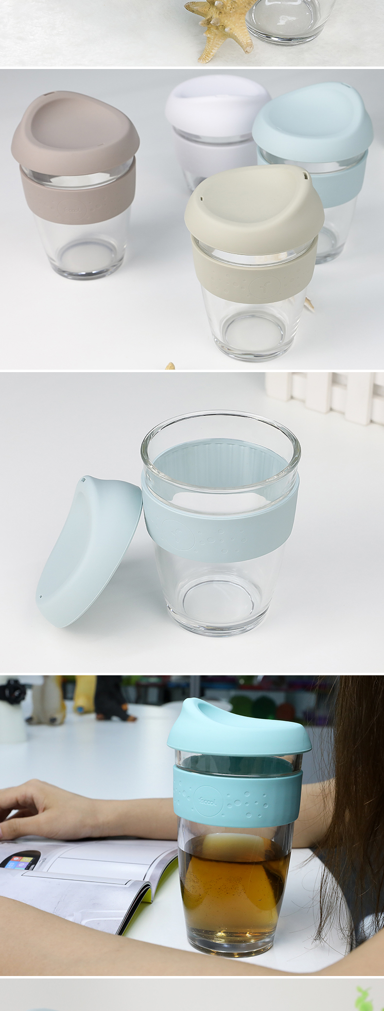 创意随手玻璃水杯带旋转扣式硅胶杯套杯盖|果汁冷热饮咖啡玻璃杯-荣进创意玻璃杯带旋转扣式硅胶杯盖杯盖批发厂家