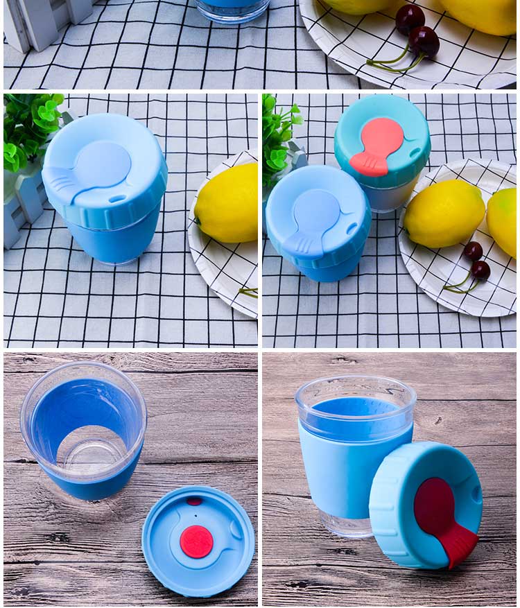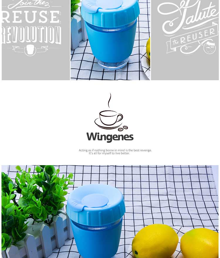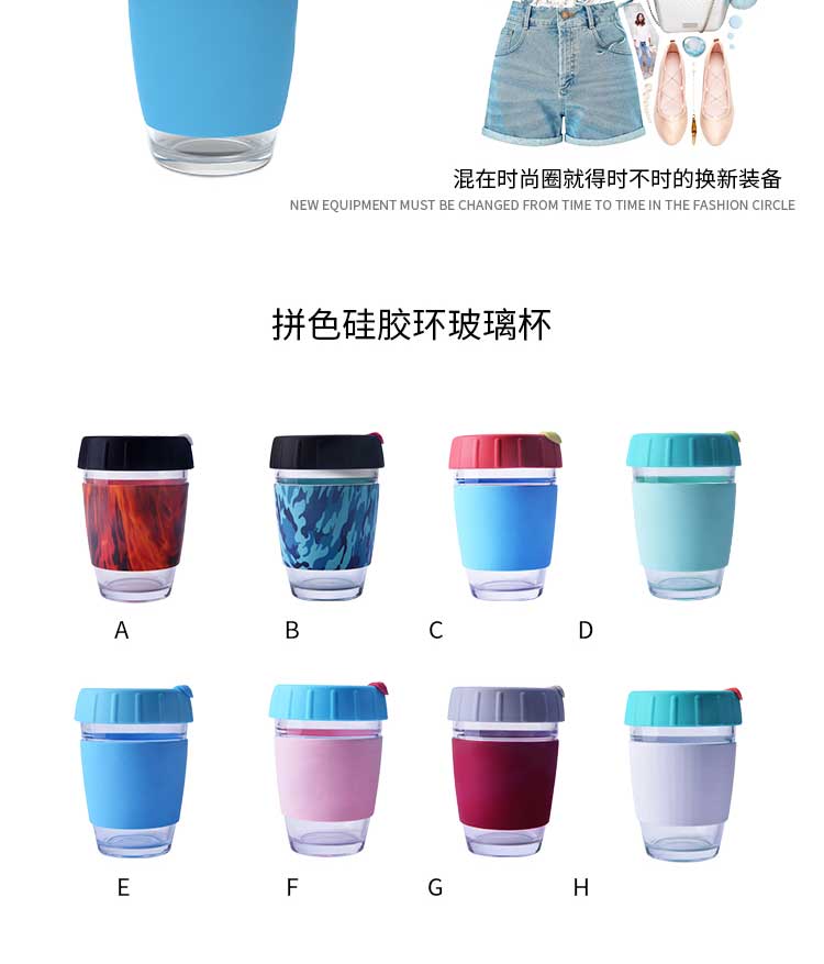 创意随手玻璃水杯带旋转扣式硅胶杯套杯盖|果汁冷热饮咖啡玻璃杯-荣进创意玻璃杯带旋转扣式硅胶杯盖杯盖批发厂家
