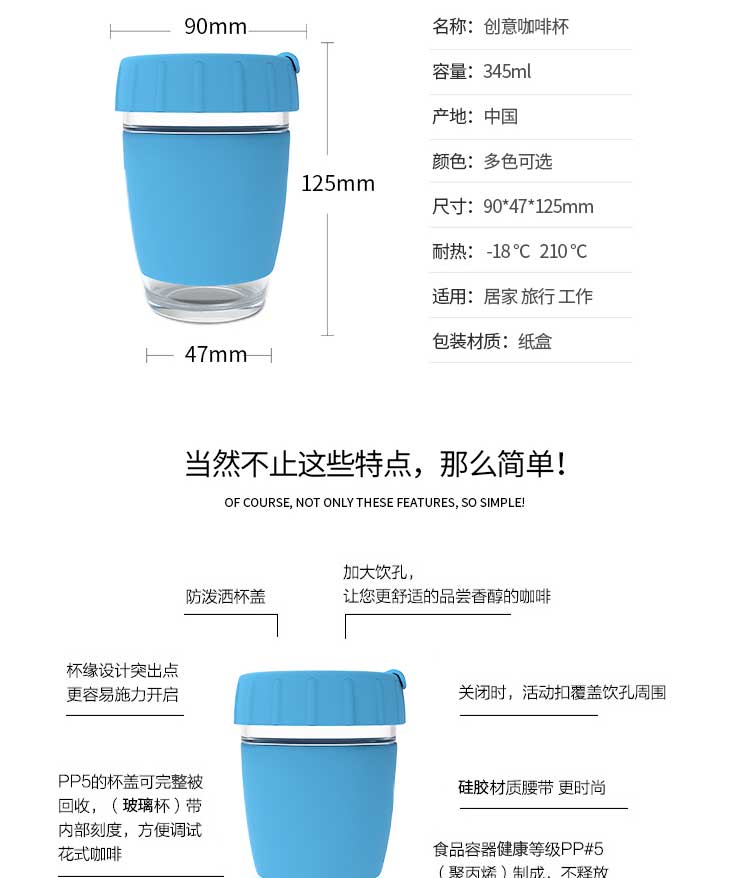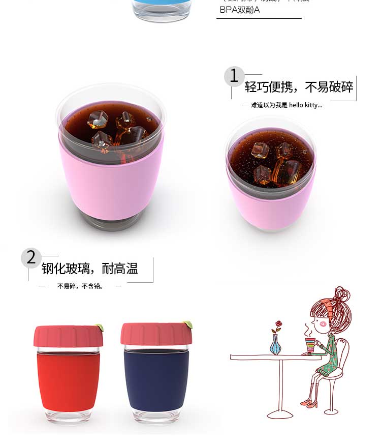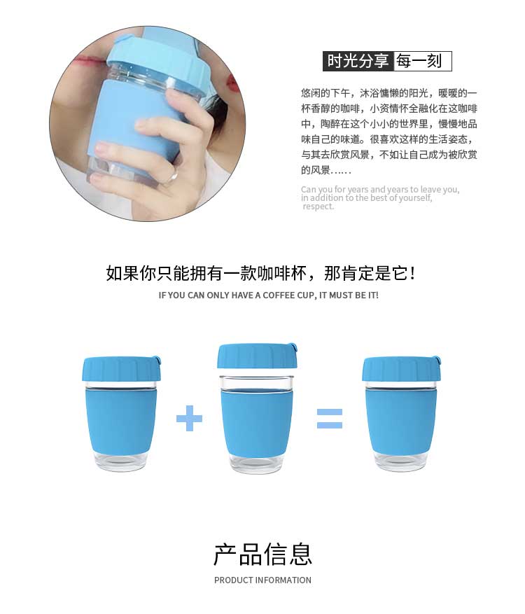 产品名称:新款创意防烫玻璃咖啡杯|玻璃咖啡杯带防烫硅胶杯盖杯套-荣进新款创意防烫玻璃咖啡杯定制厂家