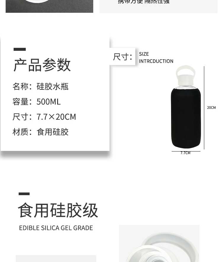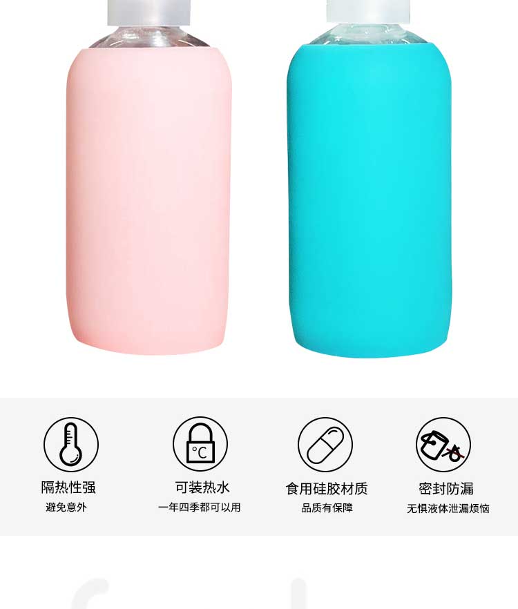 热销硅胶玻璃水瓶|随手水杯皮简约清新水瓶通用防热-荣进可定制新摔防烫隔款硅胶水瓶