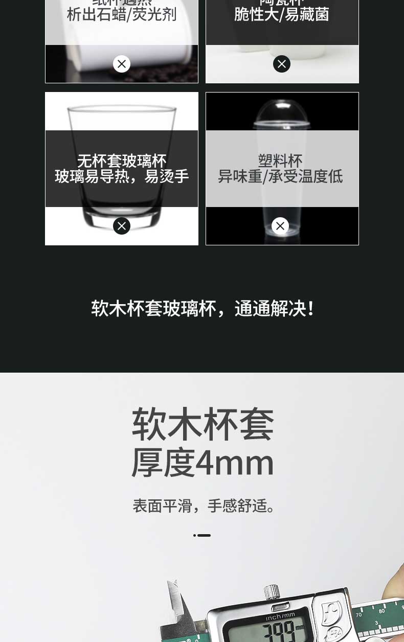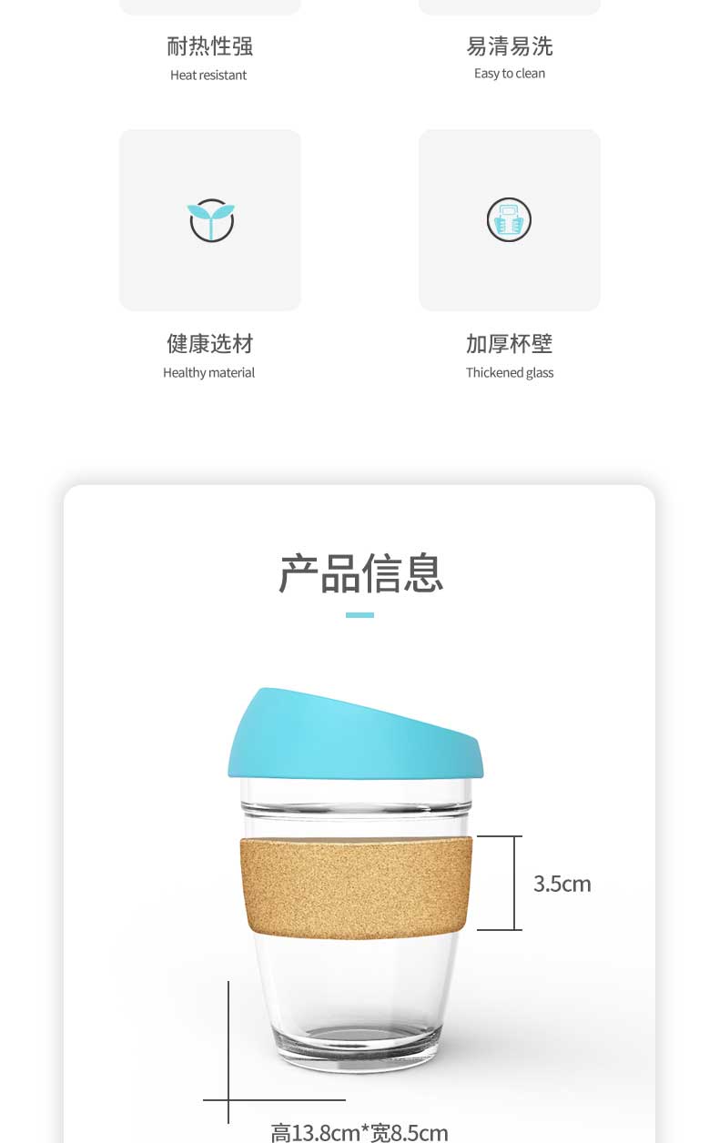 产品特点:软木杯套,无铅玻璃,防滑隔热