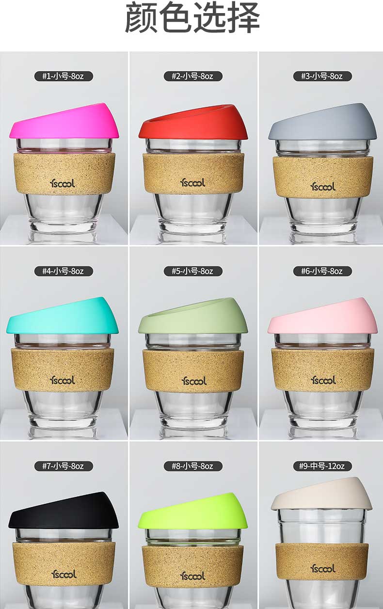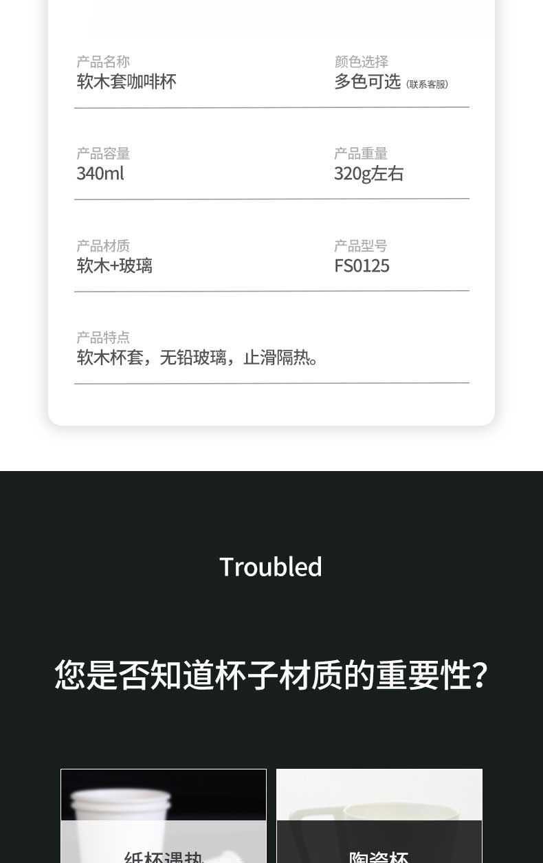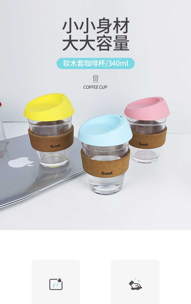 产品名称:创意玻璃咖啡杯带防烫软木套|隔热保温防烫家用办公饮水杯-荣进软木套咖啡杯可定制logo