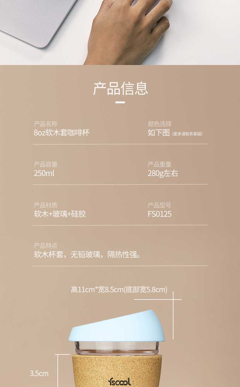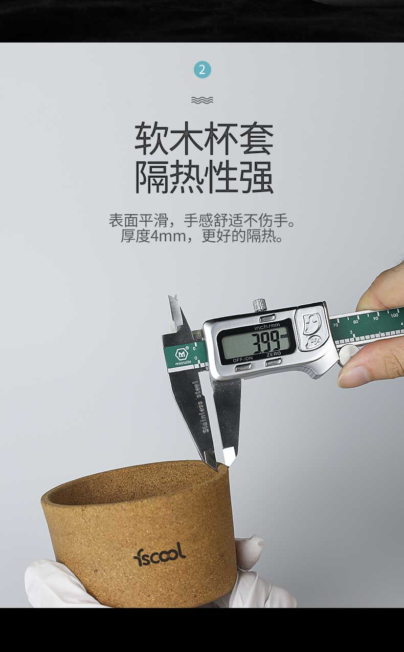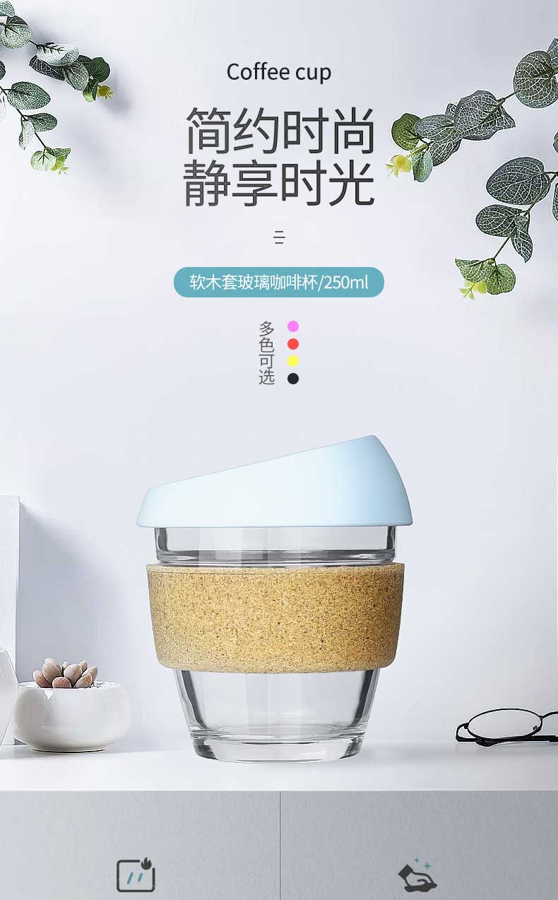 产品特点:软木杯套,无铅玻璃,防滑隔热,易清易洗,杯体高温烧制而成,可承受-40℃~220℃的温度变化。
